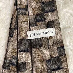 PIERRE CARDIN Mens All Silk Tie Abstract Taupe Black Tan Dressy Career Classy