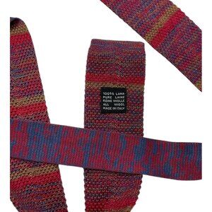PIERRE CARDIN Men's Wool Knit Necktie LUXURY Red Blue Striped Logo W:1.7" EUC