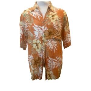 PIERRE CARDIN ORANGE HAWAIIAN SHORT SLEEVE BUTTON UP MENS SIZE LRGRGE