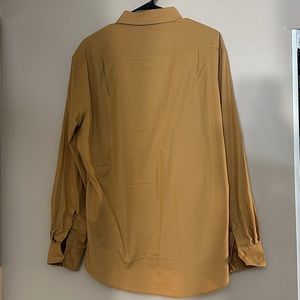 PIERRE CARDIN: SLIM FIT BUTTON DOWN SHIRT. LIGHTLY USED. BROWN. SIZE: LARGE