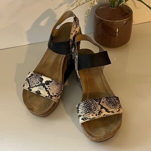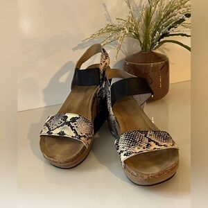 🛍️PIERRE DUMAS Snake skin and black platform sandal size 9.