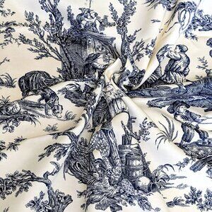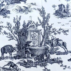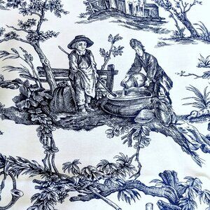 Beautiful NEW RARE French Designer PIERRE FREY Paris "Satin Coutances" Collection Blue and Off White Color Cotton Drapery Furniture Upholstery Fabric Made In France 54.5" in width (A2). This Fabric is sold as one piece of 3.52 yards. There is one small stain on the back of the fabric which is not visible on front. Please see my last picture.