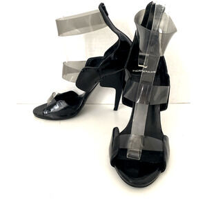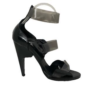 PIERRE HARDY Sandal Black Patent Leather Clear PVC Open Toe Slim Heel 37.5