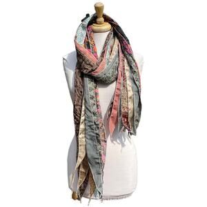 PIERRE MOSAIC Rajastan Silk Blend Multifabric Panel Mixed Print Scarf from India