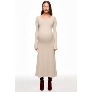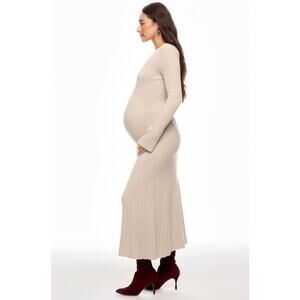 This elegant ribbed knit dress by PIETRO BRUNELLI MATERNITY offers a chic and comfortable vibe, perfect for expectant mothers. Pair it with ankle boots for a polished look that transitions effortlessly from day to evening.