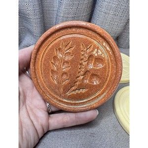 PIGEON FORGE POTTERY Buttermold Print Round Coasters Fall Harvest Brown Biege