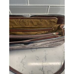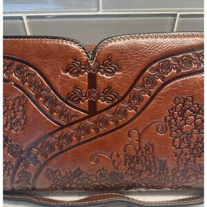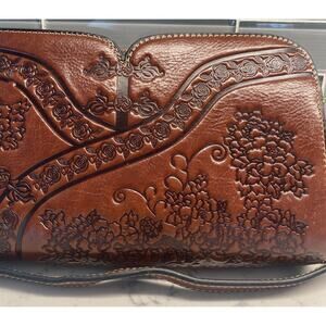 PIJUSHI Brown Floral Embossed Croc Leather Women's Bag Unique Satchel Handbag. In Excellent Condition, no flaws.