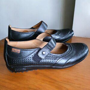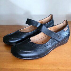 PIKOLINOS (9.5) Black Leather Mary Janes Detail Stitching Flats/Loafers