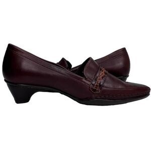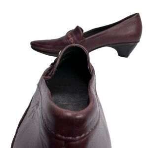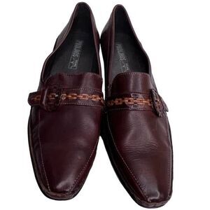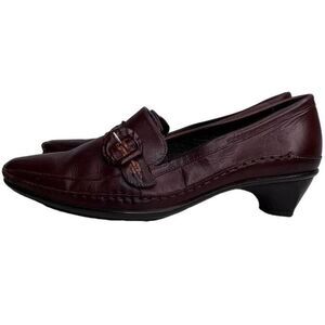 PIKOLINOS BROWN POINTED TOE SLIP -ON MULES WOMENS SIZE 39. POINTED TOE. BUCKLE ACCENT WITH BRAIDING. SLIP-ON. KITTY HEEL. BROWN LEATHER. LEATHER LINED INSOLE. ONE SMALL SCUFF AT TOP OF RIGHT SHOE. OFFERS WELCOME. I WEAR A SIZE US 9 WITH A NARROW FOOT AND THESE ARE PERFECT. I WOULD SAY THEY RUN SMALL FROM ALL THE CHARTS I HAVE LOOKED UP.