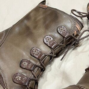Stylish PIKOLINOS combat boots. Rich brown leather. Lace-up design with side zipper. Durable and comfortable.