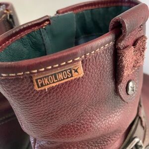 PIKOLINOS Dark Red Leather Moto Boots