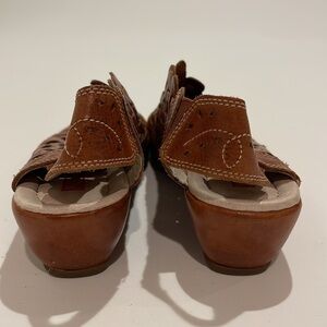 PIKOLINOS Romana Tan Leather Sling-Back Woven Slingback Wedge