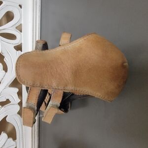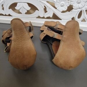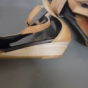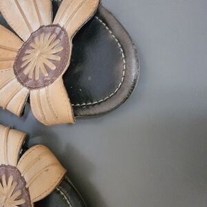 Experience the perfect blend of style and comfort with PIKOLINOS sandals, featuring elegant tan and brown hues. These open-toe sandals are adorned with decorative flower-like front, adding a touch of sophistication to your casual look. The flat design ensures all-day comfort, making them a versatile choice for any occasion. These have definitely been worn. See photo as the heel has the metal coming out, could be fixed at shoe repair. Thus the low price.