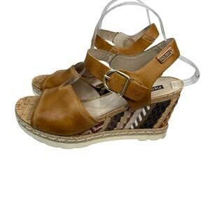 PIKOLINOS Women's 41 EU / 10.5-11 US Tribal Print Wedge Sandals Tan Leather
