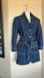 ANTHROPOLOGIE PILCRO Dark Wash Denim jacket, belted, trench styling, grey pinstripe lining, flap pockets also button. Branded PILCRO buttons down front & @ cuffs. Fabric: 99% cotton, 1% elastane; lining -poly cotton blend.