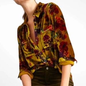 PILCRO ANTHROPOLOGIE FLORAL VELVET BUTTON DOWN SHIRT Size Small