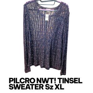 PILCRO ANTHROPOLOGIE NWT XL Drk Green Metallic Tinsel See Thru Knit Sweater $148