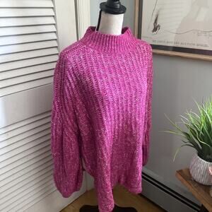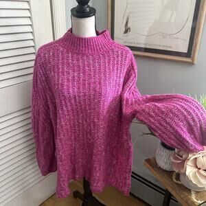 PILCRO ANTHROPOLOGIE Sweater Womens XL Pink Oversized Textured Tunic Preppy