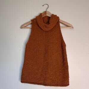 PILCRO Anthropologie Burnt Orange Sleeveless Cable knit Turtleneck Sweater XS