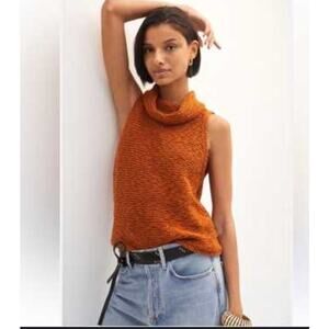 PILCRO Anthropologie Burnt Orange Sleeveless Cable knit Turtleneck Sweater size XS. Gorgeous fall color. Perfect for those in between fall days. Wear solo or pair with a cute jacket. MA