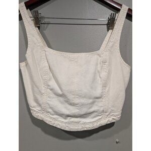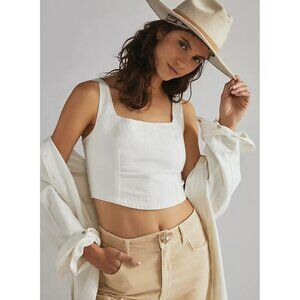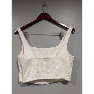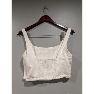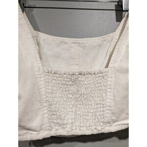 PILCRO Anthropologie Cream Corset Style Cotton/Linen Crop Top Smocked Back Sz S