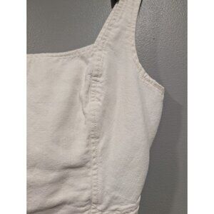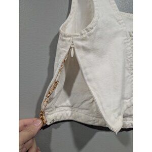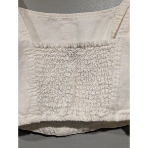 PILCRO Anthropologie Cream Corset Style Cotton/Linen Crop Top Smocked Back Sz S. Please note there is a slight yellowing spot on the side by the zipper, see attached pictures. All measurements are approximate.