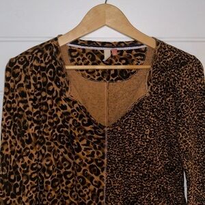 PILCRO Anthropologie Leopard Animal Print Long SleeveThermal Boho Artsy Top XS