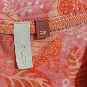 PILCRO Anthropologie Women's Large Tangerine Tropical Button-Up Blouse oversized