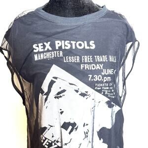 PILCRO BY ANTHROPOLOGIE Sex Pistols Graphic Band Tulle T-Shirt Black Sz XS NWOT