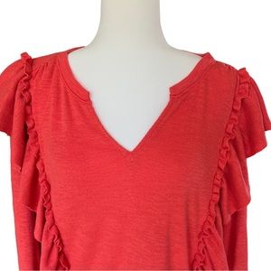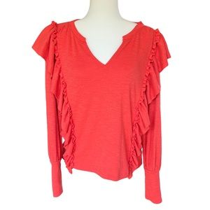 PILCRO COZY POPOVER TOP CORAL RUFFLE SIZE MEDIUM