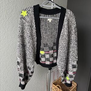 PILCRO Checkerboard Cropped Cardigan Sweater Size M