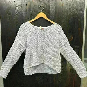 PILCRO Cotton High Low Cropped Crochet Waffle Knit Light Blue Long Sleeve Sweater Women Small