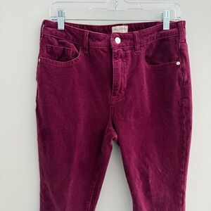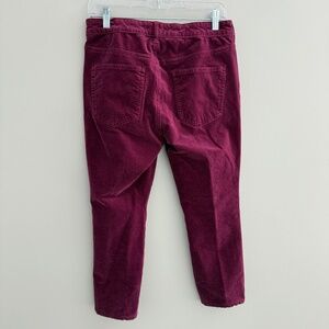 Womens size 30, deep burgundy color, cotton elastane blend, cropped length, micro corduroy, 5-pocket style, slight stretch, jewel tone, casual chic.