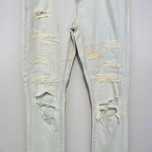 LOTS OF FACTORY DISTRESSING RIPS FRAYS THROUGHOUT