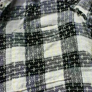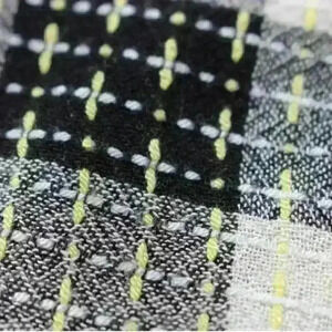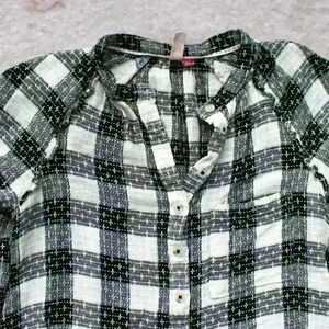 ANTHROPOLOGIE PILCRO Long Sleeve Wool Blend Lightweight Button Up Black and White Check With Embroidered Yellow Detail Mandarin Collar Extra Small XS