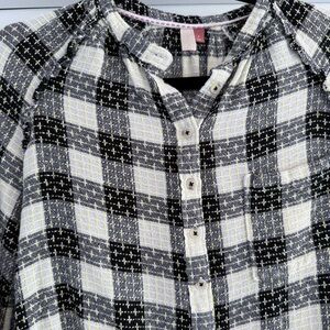 PILCRO Plaid Button Front Blouse Black Cream Lightweight Top Small Anthropologie