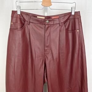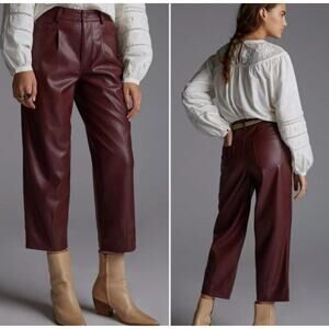 PILCRO Size 31 Anthropologie The Breaker Faux Leather Crop Pants Burgundy Red