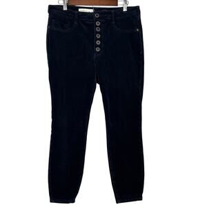 PILCRO Sz 32 ANTHROPOLOGIE Navy Blue High Rise Skinny Corduroy Pants Button Fly