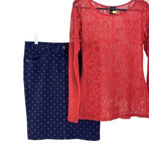 PILCRO & The LETTERPRESS dark navy stretch denim skirt w/ fuzzy polka dots SZ 28