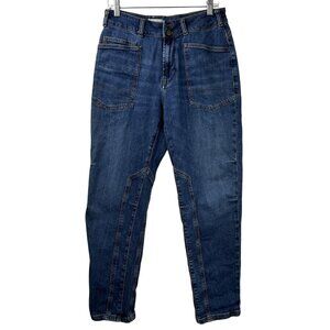The PILCRO Women’s Size 29 The Wanderer Mid-Rise Relaxed Jeans by Anthropologie are a stylish and versatile addition to any woman's wardrobe. Made from a comfortable cotton blend denim fabric with a medium wash, these jeans feature a 5-pocket design and a straight leg style. With a high rise and easy care instructions, they are perfect for all seasons and can be dressed up or down for any occasion. The classic blue color and relaxed fit make them a go-to option for everyday wear. Made by Anthropologie, known for their high-quality and unique clothing, these jeans are a great choice for the fashion-forward woman.