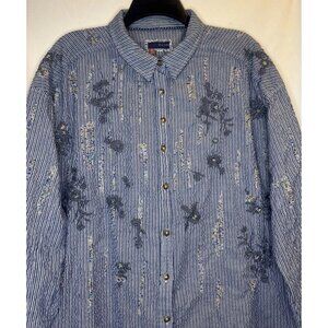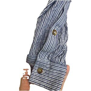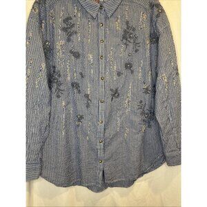 PILCRO Women’s Striped Embroidered Beaded Long Sleeve Button Down Blouse Top M