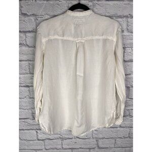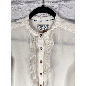 PILCRO Women's White Frayed Ruffle Linen Blend Button Down Blouse Small
