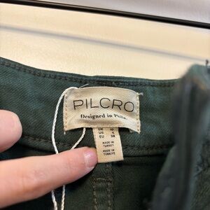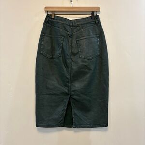 PILCRO anthropologie deep green coated denim pencil skirt size