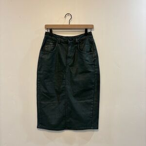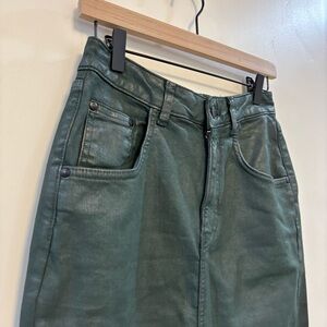PILCRO anthropologie deep green coated denim pencil skirt size 6