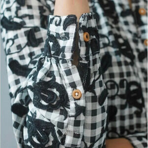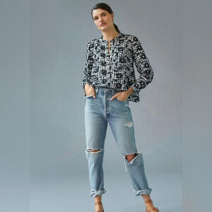 PILCRO by ANTHROPOLOGIE NWOT The Whitney Trapeze Buttondown in Black Motif