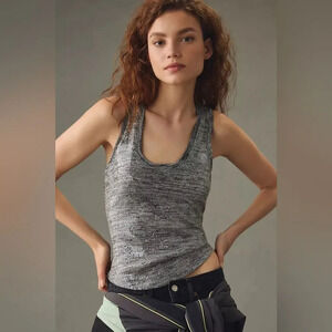 PILCRO by ANTHROPOLOGIE Sequin Scoop Tank in Light Gray