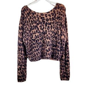 PILCRO x ANTHROPOLOGIE Leopard Print Eyelash Cropped Drapey Sweater Small