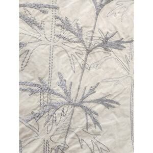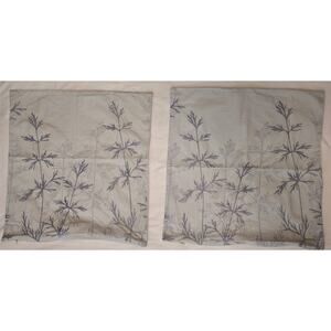 Set of 2 pillow covers (18" x 17") by Margaret Muir. They have a zip closure to insert pillow from the bottom. The color is a very light blue, like an ice blue, with silver blue embroidered tree like branch design on one side. The other side is plain.