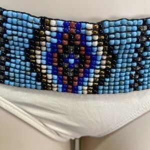 PILYQ Belted Teeny Bikini Bottom in Keshi Pearl with beaded waist lining, it’s in the heavy side l. The front bead small section did get loose and some of the beads has fallen out. Took pictures.
