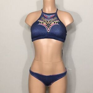 PILYQ Cayman Embroidered Gypsy halter bikini .D-cup/M-bottom NWT